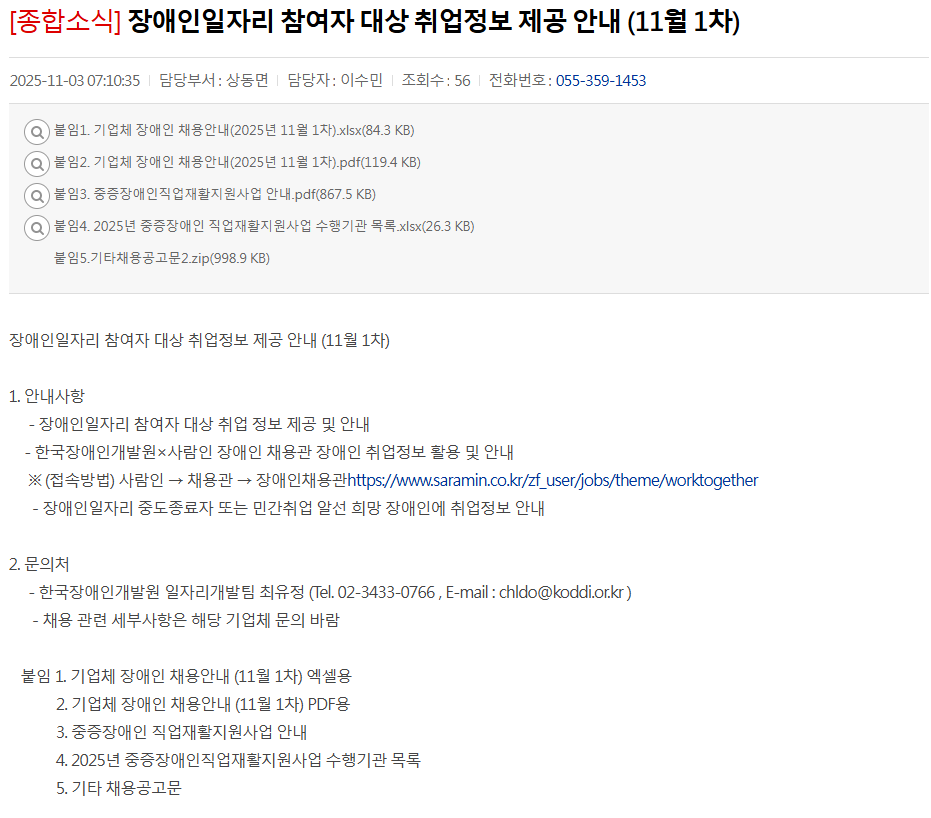 Àå¾ÖÀÎÀÏÀÚ¸® Âü¿©ÀÚ ´ë»ó Ãë¾÷Á¤º¸ Á¦°ø ¾È³» (11¿ù 1Â÷)